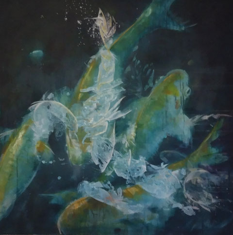 am Himmel erstrahlt es golden, Leinwand, 100 x 100, 2024